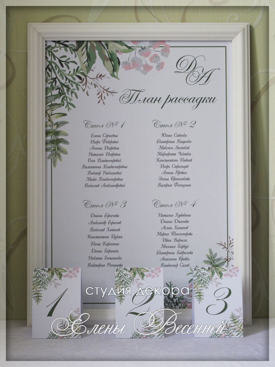 - план рассадки, номера на стол и рассадочные карточки